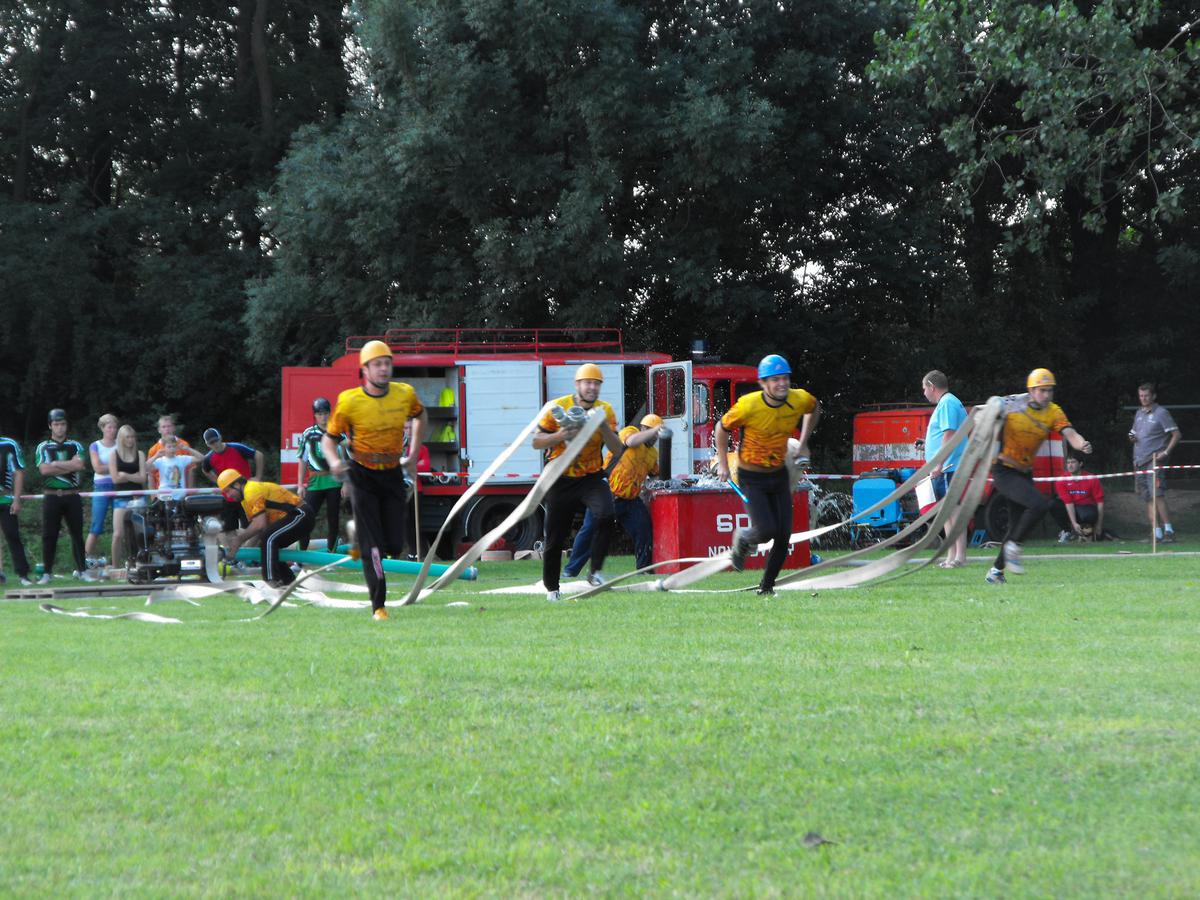 Počasí přálo, a tak se mohlo začít. Na tomto závodě startovalo 15 týmů mužů a 7 týmů žen. Jako první přišla kategorie TOP mužů. První místo si odvezli muži z Hrobec s časem 24,34. Druhé místo si vybojovalo družstvo domácí, tudíž Nové Dvory, s časem 25,60, a třetí skončil PS Předonín s časem 26,29.