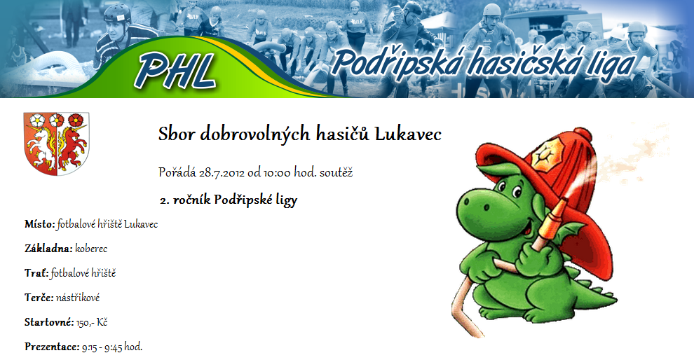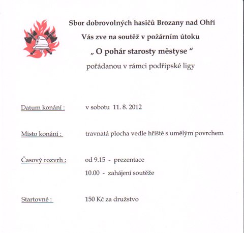 Město Štětí a Sbor dobrovolných hasičů Štětí si Vás dovolují pozvat na XXVIII. ročník a II. ročník Podřipské hasičské ligy soutěže hasičských družstev v požárním útoku, která se koná v sobotu 9. června 2012 na Městském stadionu ve Štětí.